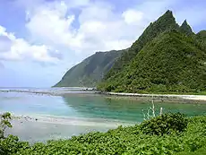 Ofu is the western part of the volcanic outcrop of Ofu-Olosega Island and the westernmost of the Manu'a Islands.[3] The main village of Ofu is located on the western shore, protected behind an offshore islet (eroded tuff cone) known as Nu'utele. Ofu has a small airport (IATA: OFU, ICAO: NSAS) and a boat harbor that serve the population on Ofu and Olosega. The twice-weekly flight from Pago Pago takes about half an hour.