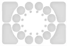Oh-Wah-Ree is a mancala variant designed by Alex Randolph and published in 1962 by 3M as part of their bookshelf game line.[1] The name "Oh-Wah-Ree" is taken from Oware, a typical West African game for which it is based on. It is played on a board with a ring of pits and stone playing pieces, distinguished from other mancala variants by the use of a second ring of holes to mark ownership of pits by the players, allowing play between more than two players at a time.[2] The object is to capture the opponents' stones.