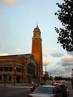 The salient feature of Ohio City's business district is the historic West Side Market, built in 1912. The European-styled market, located at the intersection of Lorain Avenue and West 25th Street, draws an estimated one million visitors annually.[5] Located north of the West Side Market is The Ohio City Fresh Food Collaborative, one of the largest contiguous urban farms in America. The operation includes a farm, retail farm stand and community kitchen on a 6-acre city parcel.[6] Ohio City chef Parker Bosley was an early farmer's market supporter.[7]