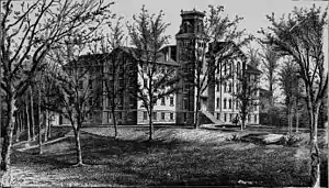 Monnett Hall, Original Section, Delaware Ohio. Monnett Hall was the primary building of the Wesleyan Female College.