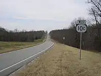 South of Jay, the route continues south for 17 miles (27 km) to an intersection with SH-116.[3] SH-10 continues south for 3 miles (4.8 km), coming to an interchange with U.S. Highway 412, the Cherokee Turnpike, at the town of Kansas.[3] (US-59 departs just south of the interchange and follows US-412 east toward the Arkansas state line at West Siloam Springs.) SH-10 then begins paralleling the Illinois River, a popular recreation area primarily accessed through SH-10. It then heads eastbound again at US-62/State Highway 51. SH-10 forms a concurrency with these two highways to Tahlequah, where SH-51 splits off. US-62 and SH-10 remain concurrent until south of Ft. Gibson.