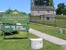 The Old Dutch Church of Sleepy Hollow (Dutch: Oude Nederlandse Kerk van Sleepy Hollow), listed on the National Register of Historic Places as Dutch Reformed Church (Sleepy Hollow), is a 17th-century stone church located on Albany Post Road (U.S. Route 9) in Sleepy Hollow, New York, United States. It and its three-acre (1.2 ha) churchyard feature prominently in Washington Irving's 1820 short story "The Legend of Sleepy Hollow". The churchyard is often confused with the contiguous but separate Sleepy Hollow Cemetery.