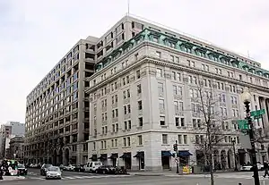 Ebbitt House and its restaurant were razed in 1926 to make way for the National Press Club building.[50] Ebbitt House closed to the public at noon on Friday, May 1, 1925, and the furnishings were auctioned off on Tuesday, May 5.[51] By this time, the hotel was so run down that the furnishings often went for a fraction of their replacement value, most going for less than a dollar.[52]