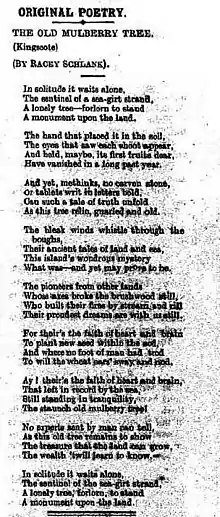 Poem about an historic mulberry tree at Reeves Point, Kangaroo Island