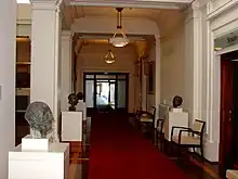 The door at right is an entrance to the Senate chamber from this corridor on the north-western side of King's Hall. The location of the House of Representatives chamber is mirrored on the opposite (south-eastern) side.