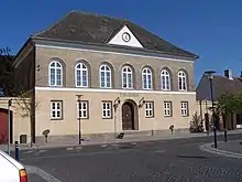 Store Heddinge's new town hall was constructed on the town's new main square Nytorv in 1836–38. The building was designed by royal master builder Jørgen Hansen Koch.[1]