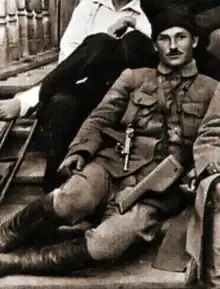 On 15 November 1918, the insurgents were caught by a Hungarian surprise attack at Temyrivka.[6] Marchenko lead his cavalry in an attempted counterattack, but his group suffered heavy losses and the insurgents were forced to fall back under heavy fire. Marchenko, along with Petya Lyuty and Petro Petrenko, managed to extricate the insurgents and their commander, Makhno, from the battle.[7] Of 350 insurgents, only half survived.[8] Despite the defeat, by 27 November, an insurgent counteroffensive had retaken Huliaipole, where Marchenko was inducted into the general staff of the newly consolidated insurgent forces.[9]