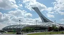 Olympic Stadium[1] (French: Stade olympique) is a multi-purpose stadium in Montreal, Canada, located at Olympic Park in the Hochelaga-Maisonneuve district of the city. Built in the mid-1970s as the main venue for the 1976 Summer Olympics, it is nicknamed "The Big O", a reference to both its name and to the doughnut-shape of the permanent component of the stadium's roof. It is also disparagingly referred to as "The Big Owe" in reference to the high cost of its construction and of hosting the 1976 Olympics as a whole.[7]