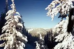 Omak experiences four distinct seasons.[38] Summers are hot and relatively dry, with a daily average of 72.2 °F (22.3 °C) in July, while winter is the wettest season of the year, with 22.3 inches (570 mm) of snowfall between November and February. Spring and autumn are mild seasons with little precipitation.[46][47] The city is located in plant hardiness zone 6a, according to the United States Department of Agriculture (USDA).[51] In July 2012, a severe thunderstorm occurred in Omak, producing heavy rainfall, gusty winds and hail, and forced the temporary closure of U.S. Route 97 and requiring repairs to public streets.[52] Omak was affected by the 1872 North Cascades earthquakethe state's largest historical earthquakewhich occurred on December 14, 1872.[53][54] The epicenter was at Omak Lake.[55] The earthquake had a magnitude of between 6.5 and 7.0 and was followed by an aftershock.[56][57] Another earthquake with minor shaking affected the city in November 2011.[58][59]