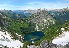Elevations around the area range from 780 feet (240 m) above sea level at the mouth of the Okanogan River to 6,774 feet (2,065 m) above sea level at the Moses Mountain.[36] The average elevation is 843 feet (257 m) above sea level according to the United States Geological Survey (USGS). The Moses Mountain, with a summit, sits east of the city,[37] while Little Moses Mountain, located 5,963 feet (1,818 m) above sea level, and Omak Mountain, located 5,749 feet (1,752 m) above sea level, are adjacent to the Moses Mountain.[36] West of the city are the North Cascades, anchored by the Cascade Range.[23] Mountain peaks on the western portion of the Omak area range between 6,000 feet (1,800 m) and 8,000 feet (2,400 m).[38] The Coleman Butte mountain summit1,450 feet (440 m) above sea levelis located directly adjacent to municipal boundaries.[39][40]