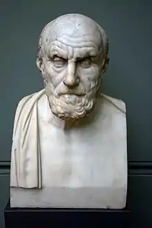 Cicero complains that Chrysippus devotes most of his efforts on theory and not therapy, but Cicero has a narrow definition of therapy: a strategy for helping someone in the sudden grip of emotion.[30] Cicero is nevertheless a useful source for the practical side of Chrysippus' therapy, and its focus on prevention.[30] Galen neglects this aspect because his aim is to attack the theory.[31]