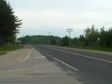 In 1952, the southern 17.8 kilometres (11.1 mi) of the route, along the east side of Lake Couchiching via what is now Simcoe County Road 44, was transferred to local municipalities and a new, longer route was designated to the east, merging with Highway 12 north of Brechin.[8][9] This routing remained in place until May 15 1976, when the province redirected the southern portion of Highway 69 along the route of Highway 103, between Waubaushene and Foot's Bay, in order to create a more direct route between Toronto and Sudbury. The route of Highway 69 between Foot's Bay and Brechin was consequently renumbered as Highway 169.[2]