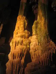 Onyx Cave is a small show cave located about 6 miles (9.7 km) east of Eureka Springs, Arkansas. It has been a tourist attraction since 1893, making it the oldest show cave in Arkansas. The cave does not contain onyx, but rather flowstone, also known as "cave onyx". During the 19th century and the beginning of the 20th century many such caves were named similarly.