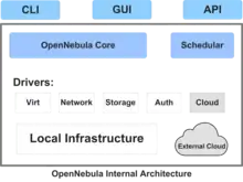 OpenNebula is an open source cloud computing platform for managing heterogeneous data center, public cloud and edge computing infrastructure resources. OpenNebula manages on-premise and remote virtual infrastructure to build private, public, or hybrid implementations of Infrastructure as a Service and multi-tenant Kubernetes deployments. The two primary uses of the OpenNebula platform are data center virtualization and cloud deployments based on the KVM hypervisor, LXD/LXC system containers, and AWS Firecracker microVMs. The platform is also capable of offering the cloud infrastructure necessary to operate a cloud on top of existing VMware infrastructure. In early June 2020, OpenNebula announced the release of a new Enterprise Edition for corporate users, along with a Community Edition.[2] OpenNebula CE is free and open-source software, released under the Apache License version 2. OpenNebula CE comes with free access to patch releases containing critical bug fixes but with no access to the regular EE maintenance releases. Upgrades to the latest minor/major version is only available for CE users with non-commercial deployments or with significant open source contributions to the OpenNebula Community.[3] OpenNebula EE is distributed under a closed-source license and requires a commercial Subscription.[4]