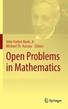 Open Problems in Mathematics is a book, edited by John Forbes Nash Jr. and Michael Th. Rassias, published in 2016 by Springer (ISBN 978-3-319-32160-8). The book consists of seventeen expository articles, written by outstanding researchers, on some of the central open problems in the field of mathematics. The book also features an Introduction on John Nash: Theorems and Ideas, by Mikhail Leonidovich Gromov. According to the editors’ Preface, each article is devoted to one open problem or a “constellation of related problems”.[1][2][3][4][5]