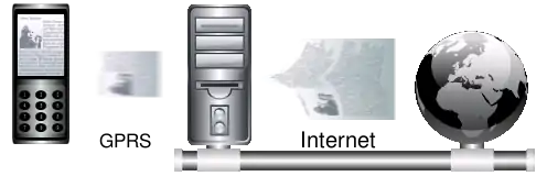When a user requests a Web page using Opera Mini, the request is sent, via the connectivity used by the device to access the Internet (typically mobile broadband or Wi-Fi), to a proxy server run by the Opera Software company, which retrieves, processes and compresses the full page, and sends the smaller processed page back to the client's device.