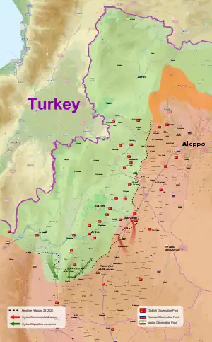 - ↑ "Turkish air and ground bombardment kills nearly 50 regime soldiers in Idlib and Aleppo and destroys 13 military vehicles in 24 hours • the Syrian Observatory for Human Rights". 29 February 2020.