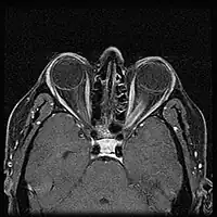 - ↑ Lindblom B, Truwit CL, Hoyt WF (April 1992). "Optic nerve sheath meningioma. Definition of intraorbital, intracanalicular, and intracranial components with magnetic resonance imaging". Ophthalmology. 99 (4): 560–6. doi:10.1016/s0161-6420(92)31932-3. PMID 1584575.