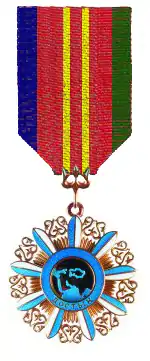 The Order of Friendship (Kazakh: Достық ордені, Dostyq ordenı) is a state award of the Republic of Kazakhstan, introduced in 1995. It is awarded to individuals for the promotion of international and civil consensus in society and the promotion of peace, friendship and cooperation between peoples.[1]