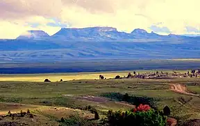 They are just past South Pass, and are two flat-topped summits plus a smaller, conical one. For travelers on the Oregon Trail, the buttes were on the horizon for a day's travel, perhaps more. This was as they crossed Rock Creek, then Willow Creek, and, for the last time, the Sweetwater River.[1]