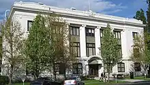 The Oregon Supreme Court Building currently houses the courtroom for the Supreme Court and the state's law library.[5] This single courtroom is also home to where oral arguments are heard for the Oregon Court of Appeals,[13] while the building is home to Oregon Judicial Department.[14] The Supreme Court's courtroom and offices for the justices are located on the third floor.[12] This building is the oldest state government building in Oregon.[5] In 2006, new security measures were implemented at the building that require visitors to sign in with an Oregon State Police officer who is posted at a security desk near the main entrance to the building on the first floor.[15]