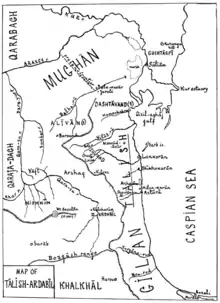 Elucidation of ethnogenesis is associated with certain difficulties. First of all, it is a meager factual base that can be compensated for by materials of language, toponymy, mythology, historical legends, etc. The toponym "Talysh" is known from medieval Arabic sources, in particular, it is found in the Iranian historian al-Tabari, who designated the Talysh as "al-thailasan". Al-Tabari writes: "In the mountains around Azerbaijan lived such peoples as Gelae (one of the tribes of the ancient Cadusii) and al-Tailasan, who did not obey the Arabs and were free and independent."[1] There are still many blank spots in the issue of the ethnogenesis of the Talysh. Unlike most of the peoples of the Caucasus, the genetic diversity of the northern Talysh is still practically not studied. There is only some information about the demographic structure and genetic polymorphism of haptoglobin, transferrin, group-specific component, and albumin in the Talysh of the village of Pirasora, Lerik region of Azerbaijan.[2] Ancient and medieval tribes or peoples took part in the formation of the ethnic group represented by the Talysh. In antiquity, the territory of the Talysh was inhabited by the Iranian-speaking tribes of the Scythians, who were mentioned in the descriptions of the ancient Greeks under different names. One of these tribes was the Scythian Gelae,[3] which the Greeks called the Cadusii, but according to other sources, Cadusii was the name for three tribes represented by the Aorsi, Dahae and Gelae.[4] But Gelae are also often mentioned by ancient authors with Legae, from which the modern name of the city of Lerik in the Republic of Azerbaijan originates. The Talysh call Lerik as "Lik".[5] The Scythian origin of the Talysh is also indicated by the name of the city Astara, which is given in the sources as the name of the Scythian goddess "Tara".[6] We must also not forget about the results of archeology, which were carried out by Jacques de Morgan, where he gives the mounds[7] of Lankaran and Astara a Scythian origin.[8][9][10]