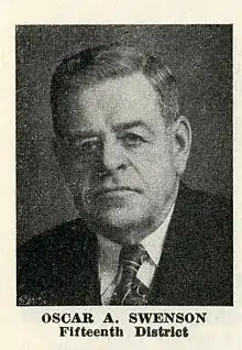 Oscar A. Swenson (March 27, 1877 – June 20, 1951) was a Minnesota politician and a Speaker of the Minnesota House of Representatives. He served two decades in the Minnesota House of Representatives, and another 14 years in the Minnesota Senate.[1]