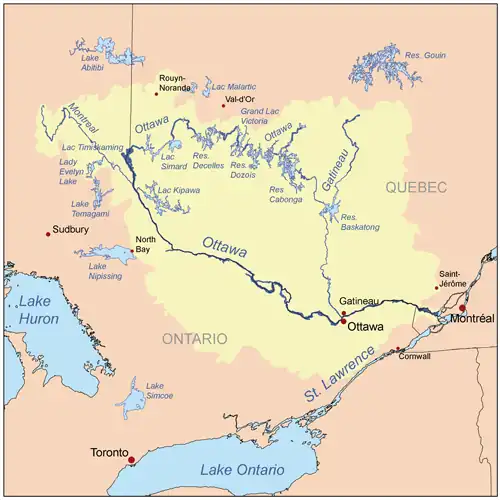 Communities along the Ottawa River include (in down-stream order):