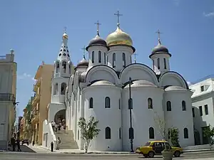 The Our Lady of Kazan Orthodox Cathedral (Spanish: Catedral Ortodoxa Nuestra Señora de Kazán) (Russian: Православный Собор Богоматери Казанской Transliteration: Pravoslavnyj Sobor Bogomateri Kazanskoj), is a Russian Orthodox cathedral located in historic old town of Havana, Cuba, under the jurisdiction of the Russian Orthodox Church.