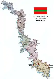Transnistria is a breakaway state located mostly on a strip of land between the River Dniester and the eastern Moldovan border with Ukraine. Since its declaration of independence in 1990, and especially after the War of Transnistria in 1992, it has been governed as the Pridnestrovian Moldavian Republic (PMR, also known as Pridnestrovie), a state with limited recognition that claims territory to the east of the River Dniester, and also to the city of Bender (Tighina) and its surrounding localities on the west bank in the historical region of Bessarabia. The names "Transnistria" and "Pridnestrovie" both refer to the Dniester River. Unrecognised by any United Nations member state, Transnistria is designated by the Republic of Moldova as the Transnistria autonomous territorial unit with special legal status (Unitatea teritorială autonomă cu statut juridic special Transnistria), or Stînga Nistrului ("Left Bank of the Dniester").