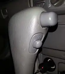 Overdrive button on the gear stick of an automatic vehicle manufactured in 2000.