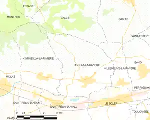 Pézilla-la-Rivière is located in the canton of Le Ribéral and in the arrondissement of Perpignan.