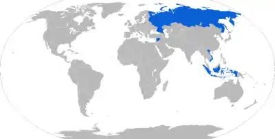 •  Russia – 3 "Bastion-P" complexes delivered in 2010, all the complexes taken into service with the Russian Black Sea Fleet's 11th Independent Coastal Missile-Artillery Brigade stationed near Anapa[31] and the Project 1234.7 Nakat, a one-off Nanuchka IV-class corvette commissioned in 1987 with 2x6 Oniks.[32] The "Bastion-P" is deployed by Russian forces in Crimea.[33] One more Bastion-P was delivered in 2015.[34] 2 Bastion systems are in service with the Northern Fleet and at least one with Western Military District (Baltic Fleet).[35] Newest class of Russian nuclear-powered attack submarines, Yasen-class submarine, can also launch the missile.[36] Submarine-launched variant entered service in 2016.[37] Two Bastion missile systems delivered in 2017 and one more in 2018.[38][39] Totally 4 Bal and Bastion systems in 2018.[40] One more system delivered for the Pacific Fleet in early 2019.[41][42] Totally 3 Bastion systems and 55 Oniks were delivered in 2019.[43][44] The Russian Defense Ministry concluded a contract at the Army-2020 forum for purchasing cruise missiles 3M55N Oniks.[45] 3 more delivered during 2021.[46][47]