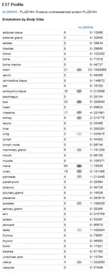 2. "FLJ22184 - Normal tissues of various types". GEO Profiles. National Center for Biotechnology Information. Retrieved 1 May 2015.