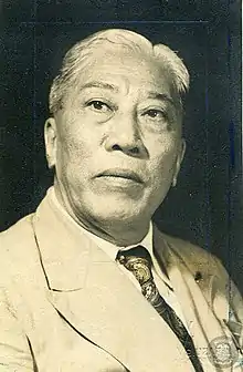 He was elected and he served for six years, until 1953.[7] As a senator, he always stood up in the Senate for an "Mailed Fist" policy against the Hukbong Mapagpalaya ng Pilipinas in contrast to the voices urging appeasement.