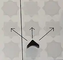 Pieces may become unblocked by the actions of other pieces, but can also be unblocked by "rotation". To rotate, the player rotates their piece forty-five (one rotation) or ninety (two rotations) either left or right. When they do this, the player removes 2 markers (forty-five degree rotation) or 4 markers (ninety degree rotation) as the cost for rotation. Markers may be taken from unoccupied fields only and can be anywhere on the board. Note that rotation is the players full turn i.e. the player does not get a rotation and move in the same turn.