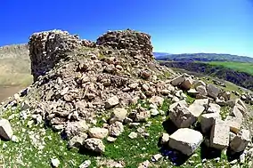 The Paikuli inscription (Kurdish: پەیکوڵی, romanized: Peykulî,[1] Persian: پایکولی, in Arabic: بيكولي) is a bilingual Parthian and Middle Persian text corpus which was inscribed on the stone blocks of the walls of Paikuli tower; the latter is located in what is now southern part of Iraqi Kurdistan near modern-day Barkal village, Sulaymaniyah Governorate, Iraq (35°5′53.91″N 45°35′25.95″E / 35.0983083°N 45.5905417°E). These inscribed stone blocks are now in the Sulaymaniyah Museum; the field only contains the stones that were used in the construction of the tower.[2] It was set up as a monument to victory, and tells how and why the Sasanian emperor Narseh (also written Narses) ousted his grandnephew from power.[3]