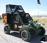 ATV-based tanks are ATVs fitted with weapons and protective coverings. The level of involvement varies here as well; some are simply quads or similar fitted with a removable netting cage, others feature scratch-built bodies and turrets and are capable of housing several players and their equipment. All-terrain vehicles, Golf carts, riding mowers and amphibious ATVs are the most popular bases for ATV tanks, thanks to ready availability, off-road ability and low price.