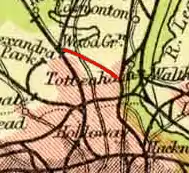 - ↑ "Palace Gates Railway line to South Tottenham". www.geograph.org.uk. Retrieved 8 February 2013.