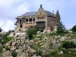 The palace was built between 1920 and 1922 for Abárzuza, Conde de las Almenas III.[1] It is located on the peak of a granite mountain, 1,011 metres above sea level. It covers 100 acres. Parts of it remain carved into the rock, such as stairs and balconies.[2]
