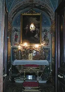 From 1755 to 1771, the brothers Mario and Camillo Compagnoni Marefoschi, commissioned from Luigi Vanvitelli a major refurbishment, leading to the late-baroque or Rococo facade we see presently. Along the entrance stairway are numerous ancient Roman inscriptions derived from Hadrian's Villa at Tivoli.[1]