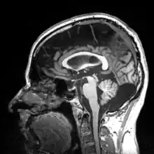 Sagittal view of a human brain through MRI