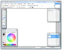 The graphical control element palette window, also known as utility window or floating palette, floats on top of all regular windows and offers ready access tools, commands or information for the current application.