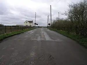 A passenger station opened on 2 March 1896,[1] and the 1899 map shows two platforms to the east of the level crossing. Two buildings had appeared just to the north, on the other side of the Warping Drain to the station. The station and the buildings were only just in Nottinghamshire, as the county border with Lincolnshire ran diagonally across the countryside, crossing the railway about half way along the eastern siding.[6] The building nearest the road was the Park Drain Hotel, which was completed in 1899 by George Dunston, a local colliery proprietor and mining engineer. He had obtained a licence to serve alcohol in 1897, before construction had begun, which was granted on the basis that Park Drain would soon be the centre of an extensive coal mining operation.[7] Coal had first been discovered in the vicinity when exploratory drilling had taken place at Idle Stop in 1893. Two seams were found, at depths of 3,142 feet (958 m) and 3,185 feet (971 m),[8] A newspaper report of a dinner held by Dunston at the hotel in 1899 noted that the station served the people of Westwoodside, but that the hotel stood in a remote location, with only some railway men's cottages and a signal box nearby. It is unclear whether the station was in full operation at that time, since Dunston, in a speech which outlined plans for a mine and a large village or small town near the hotel, also mentioned that a number of his friends were missing from the dinner because the railway company would not stop the train on which they were travelling at Park Drain.[9] The scheme to open a mine foundered when the First World War began, and there were also issues with drainage. Despite its isolated location, the hotel flourished until the 1990s, when it closed, and in 2003 the building was re-used as offices.[10]