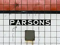 71. Cox, Jeremiah (June 2, 2008). "Original, now very dirty, black lettering on a white background 'Parsons' signs are still intact along the columns between the express tracks". subwaynut.com. Retrieved August 26, 2019.