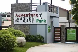The park's main feature is the Water Park which consists of two adult swimming pools, two pools for kids and a mini-Olympic-sized swimming pool.[6] It also features rapids and water slides, as well as cottages and picnic tables. The Adventure Park is where visitors can try rappelling and wall climbing. It also contains a skate park, obstacle courses and the tallest and longest zip line in Metro Manila at 18 metres (59 ft) high and 200 metres (660 ft) long.[6] The Pasig Zoo is another major attraction in the park which contains an aviary, a vivarium and a petting zoo that houses ostriches, crocodiles and monkeys.[6][7]