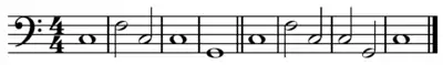- ↑ Caution: Keeping all chords in root position without using a stepwise melody produces parallel fifths (see parallel harmony), which are prohibited by classical (rather than popular) voice-leading rules. The following files may or may not be more suitable for use in strict counterpoint, though they lack the ground bass.