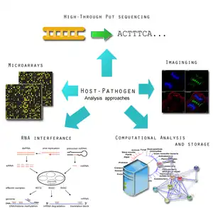• Microarray analysis of host and microbe gene expression during infection. This is important for identifying the expression of virulence factors that allow a pathogen to survive a host's defense mechanism.[9] Pathogens tend to undergo an assortment of changed in order to subvert and hosts immune system, in some case favoring a hyper variable genome state.[55] The genomic expression studies will be complemented with protein-protein interaction networks studies.[9]