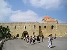Saint George is among the most celebrated saints in Syria, especially among the Antiochian churches. The historical Saint George's Monastery in Meshtaye village near the city of Homs is a Greek Orthodox religious complex dating back to the 5th century. It consists of three leveled churches from the 5th, 13th and the 19th centuries respectively. The oldest one is entirely built in Byzantine style. The monastery is one of the most busiest destinations for local and foreign pilgrims, mainly at the feast of Saint George and the feast of the elevation of the Holy Cross (14 September).