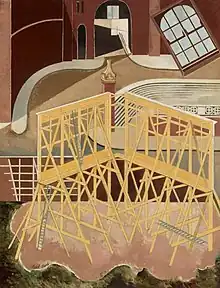In 1930 Nash started working as an art critic for The Listener, and in his writings acknowledged the influence of the 1928 Giorgio de Chirico London exhibition and of the modernist works he had seen during a visit to Paris in 1930 at Léonce Rosenberg's gallery.[28] Nash became a pioneer of modernism in Britain, promoting the avant-garde European styles of abstraction and surrealism throughout the 1930s. In 1933 he co-founded the influential modern art movement Unit One with fellow artists Henry Moore, Barbara Hepworth, Ben Nicholson, Edward Wadsworth and the critic Herbert Read. It was a short-lived but important move towards the revitalisation of British art in the inter-war period.[29]